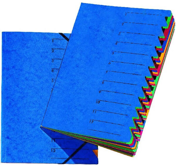 12 részes rendező mappa, mely lehetővé teszi a dokumentumok szétválogatását, és biztonságos tárolását. 12 részes rendszerező mappa újrahasznosítható anyagból. A praktikus, színes fülek ideálisak a fontos dokumentumok egyértelmű szortírozásához és tárolásához. A mappa különösen rugalmasan használható a borítón található számnyomtatásnak és az egyedi címk