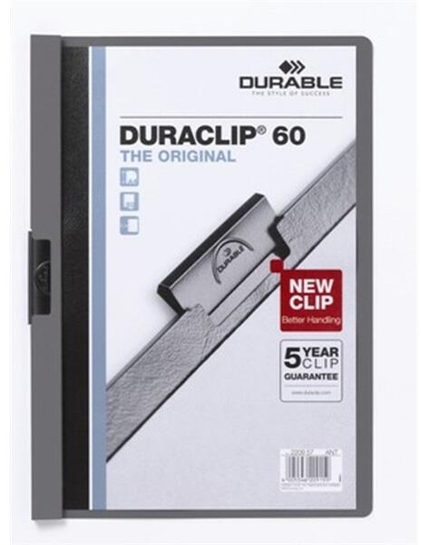 DURACLIP® az eredeti prezentációs mappa, áttetsző előlappal, 12 féle színben. Kapacitás: 1-60 A4 lap.