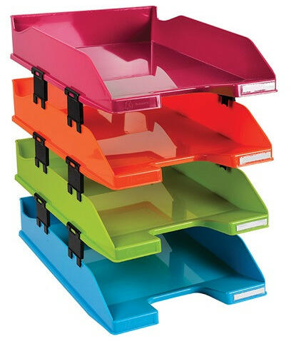 Irattálca műanyag Exacompta Combo Midi A/4+ 4 emeletes vegyes színek 4 db-os irattálca szett A/4 dokumentumok tárolására megnövelt tárolási kapacitás a távtartóknak köszönhetően