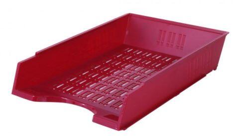 Műanyag tálca A4-es papírhoz, hátrafelé halmozható. A beállítás átlátszó. Nagyobb, 10 db-os csomag. Szín: bordó.