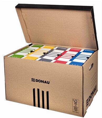 Megerősített archiváló konténer felfelé nyíló fedéllel -befogadóképessége: 5 db 100 mm vagy 6 db 80 mm gerincvastagságú archiválódoboz -háromrétegű, savmentes ( PH 7,5) hullámkarton alapanyag -megerősített alj és megfogó nyílás -a tetőn és az aljon elhelyezkedő bevágások segítik a dobozok stabil egymásra helyezhetőségét -lapraszerelt, de könnyedén összeállí