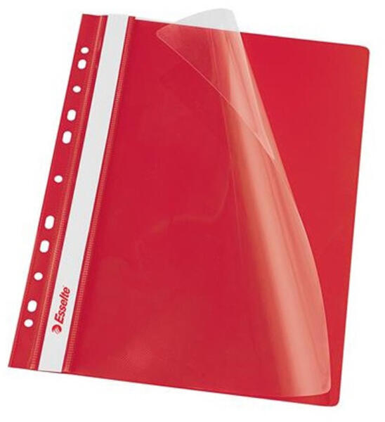GYORSFŰZŐ, LEFŰZHETŐ, PP, A4, ESSELTE, VIVIDA, PIROS Az iratok áttekinthetőbb és egyszerűbb kezelését szolgálja. A lefűzött iratokat a gyorslefűzővel együtt lehet iratrendezőben vagy gyűrűskönyvben tárolni. Cserélhető címkével rendelkezik. A4 formátum Lefűzős szerkezet: fém Borító: víztiszta, színtelen műanyag Hátlap: műanyag 10 db / tasak Katalóguskód: 35807