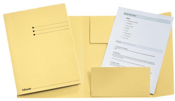 3-pólyás mappa dokumentumok tárolásához az irodában, otthon, iskolában egyaránt tartós használat a vastag, erős karton alapanyagnak köszönhetően kiváló minőségű, 100%-ban szűz rosttartalmú, FSC minősített karton igényes kivitelű, szupererős prespán (enyhén fényes) karton alapanyagból készült kapacitás: kb 150 lapGyártó/első EU forgalmazó elérhetősége: Esselt