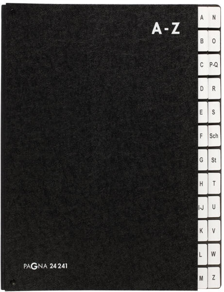 Karton előrendező fekete színben. Jellemzők: 3 lyukon keresztül látható, hogy van-e dokumentum a különböző rekeszekben. Kemény karton borító. Nyújtható vászongerinc nagyobb mennyiségű dokumentumhoz. Méret: A4 Katalóguskód: 51732 ELŐRENDEZŐ KARTON A-Z NYITOTT PAGNA FEKETE Gyártó : Pagna