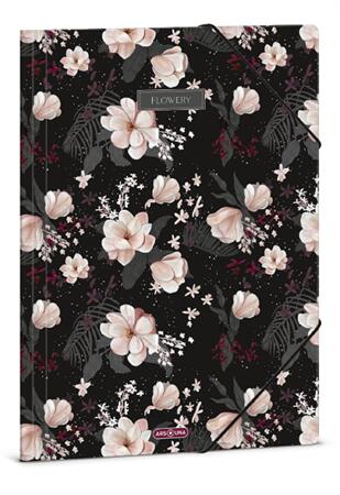 Dosszié szép virágos grafikávalMéret: A/4-es (240x330 mm)Anyaga: 350 gr-os, vastag kartonSzínes gumipánttal zárható