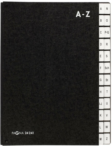 ELŐRENDEZŐ KARTON A-Z NYITOTT PAGNA FEKETE Karton előrendező fekete színben. Jellemzők: 3 lyukon keresztül látható, hogy van-e dokumentum a különböző rekeszekben. Kemény karton borító. Nyújtható vászongerinc nagyobb mennyiségű dokumentumhoz. Méret: A4 Katalóguskód: 51732