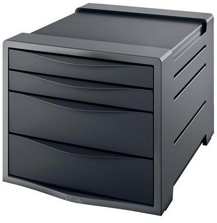 Irattároló, műanyag, 4 fiókos, ESSELTE "Europost", Vivida fekete - friss megjelenésű, modern fiókos irattároló - formatervezése tökéletesen illeszkedik az Europost és VIVIDA termékcsalád más termékeihez - 4 könnyen kihúzható fiók kicsúszást gátló szerkezettel - feliratozási lehetőség a fiókokon a dokumentumok gyors előkereséséhez - a fiókok eleje zárt, így tartal