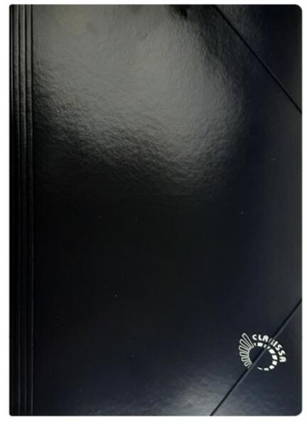 A4 méretű dokumentumok tárolására320 g/m2 karton, sarkos gumírozás, gumiszalaggal zárható, 3 belső pólya