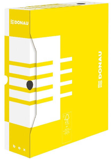 Archiváló doboz DONAU karton A/4 100 mm sárga Szabványos doboz iratrendezők-, valamint iratrendezőkből kivett dokumentumok tárolására. Lapraszerelt, könnyen összeállítható. Rövid és hosszú oldalon is stabil. 5 oldalán feliratozható. Praktikus lyukakkal a doboz-, valamint a doboz tartalmának könnyű kezelése érdekében.
