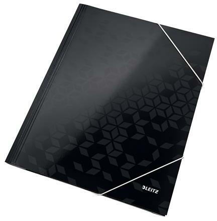 Gumis mappa, 15 mm, karton, A4, LEITZ "Wow", fekete - E39820095 - Mappák karton gumis - - szembetűnő 3-pólyás mappa ragyogó színekben - a laminált felület fényes, kiváló minőségű megjelenést kölcsönöz - a pólyák megakadályozzák a lapok kicsúszását - gumis