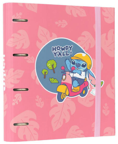 Stitch gyűrűskönyv A/4, 4 gyűrűs. Ebben a prémium minőségű gyűrűskönyvben tárolhatod sulis dolgaid, irodai papírjaid, de akár receptjeid is. 2 mm vastag kartonból készült, tartozék egy rugalmas szalag, amellyel könnyedén lezárhatod, ha magaddal akarod vinni. Mérete: 26x32cm. 4 gyűrűs