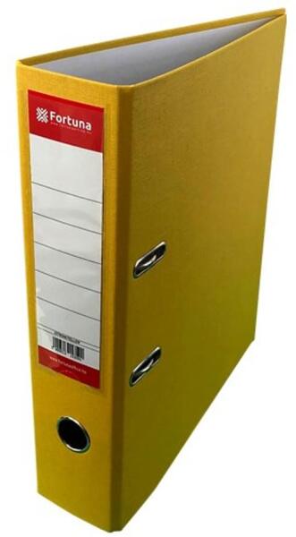 Közkedvelt iratrendező. Kívül műanyag, belül papírborítású. 7,5 cm-es gerinc. A gerincre hegesztett címketaró 195 mm hosszú. A cserélhető címke egyszínnyomott. Kihúzógyűrűvel ellátva. Az iratrendező záródását az elején elhelyezett 2 db acélgyűrű biztosítja. Az iratok lefűzése karos, kétkapcsos szerkezettel, fém leszorítóval történik.