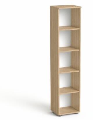 5 rendező magas, polcos szekrény méret: 1786x400x355 mm tetőlapok: 25 mm bútorlapból polcok és oldallapok: 18 mm bútorlapból hátlap: 3,2 mm vastag préselt lemez élzárás: 2 mm szín: kőris