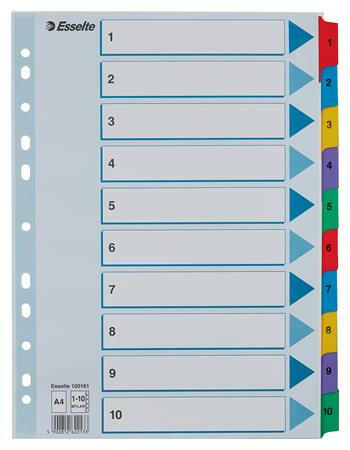 Regiszter, karton, A4, 1-10, ESSELTE "Mylar"