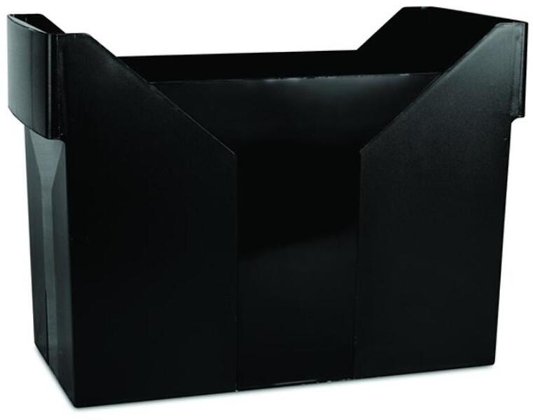 Univerzális műanyag doboz, függőmappákhoz. Kompatibilis az összes szabványos függőmappával. Kapacitás: 20 db függőmappa vagy 3 db A/4 50 mm dosszié vagy gyűrűs irattartó. Belső mérete: 160x330x258 mm. Külső mérete: 163x365x260 mm