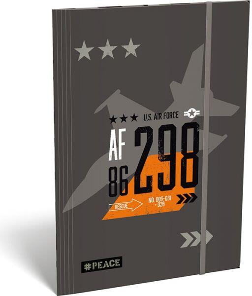A4-es méretűgumis mappa Peace Air mintával fiúk. Mérete: 32,8x0,4x23,5 cm. Szín: katonai zöld. Minőségi Lizzy Card termék. A PEACE Air kollekció a repülés, a sebesség, a vadászpilóták világába kalauzol. A katonás military színek és formák uralják a kollekciót. Fedezd fel a Lizzy Card - Peace Air teljes kollekciójából >>