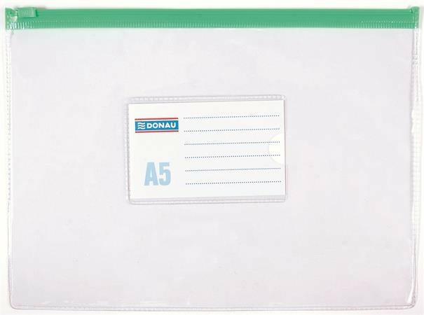 Irattartó tasak, A5, PVC, simítózáras, DONAU - A5 méretű dokumentumok és kisebb kiegészítők (toll, számológép, jegyzetek) tárolására - erős PVC alapanyag - a simítózárnak köszönhetően az iratok nem sérülnek és nem vesznek el - vegyes színben (kék, zöld, piros, sárga) a szín nem választható - kiszerelés: 1 db