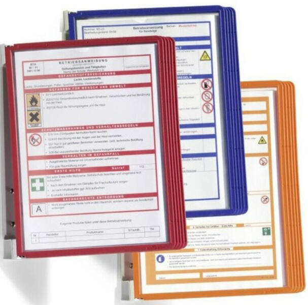 Fém fali tartó 5 db SHERPA® A4 méretű panellel. Piros, sötétkék vagy narancssárga színben. Katalóguskód: 27325