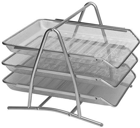 Fémhálós kivitelű háromszintes irattartó tálca, A/4 -es méretű iratok tárolására. Színek: fekete, ezüst.