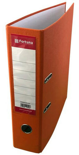 Iratrendező FORTUNA A/4 50mm narancssárga Közkedvelt iratrendező. Kívül műanyag, belül papírborítású. 5 cm-es gerinc. A gerincre hegesztett címketaró 195 mm hosszú. A cserélhető címke egyszínnyomott. Kihúzógyűrűvel ellátva. Az iratrendező záródását az elején elhelyezett 2 db acélgyűrű biztosítja. Az iratok lefűzése karos, kétkapcsos szerkezettel, fém leszorít