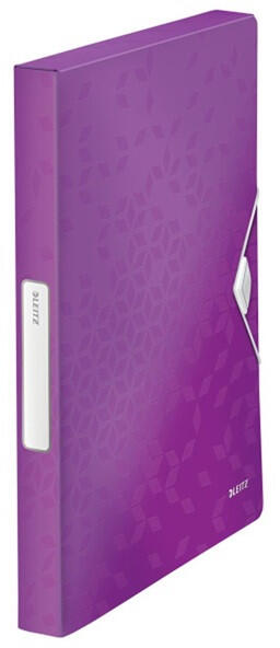 Leitz Wow Jumbo lila pp gumis mappa Kiváló minőségű, gerincvastagított PP mappa ragyogó WOW színekben, stílusos geometriai mintázattal. Ideális dokumentumok, mappák vagy egyéb WOW termékek tárolásához és szállításához. Praktikus gumiszalagos záródás a dokumentumok biztonságos szállításához Gerinccímke a tartalom könnyű azonosításához Kompatibilis 3-pólyás mapp