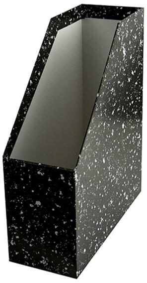 Irattartó papucs 90 mm karton márvány mintás fekete Kívül egyszínű, fóliázott, belül fehér papír borítású, kemény, merev falú, környezetbarát kartonlemezből készült irattartó papucs, 90 mm-es gerincszélességgel. Formatervezett, modern stílusú, feliratozható. Az alacsony oldalmagasság lehetővé teszi feliratozott CD-k tárolását is.