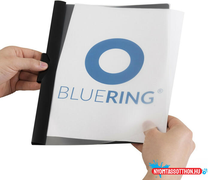 Gyorsfűző klip mappa A4, műanyag 60laphoz fém klippes Bluering® fekete A/4-es lapok tárolására alkalmas műanyag fém klippes dosszié. A borító gerincén elhelyezett fém klipp 60 lap befogadására alkalmas. Előlapja áttetsző, színtelen műanyag. Hátlapja színes műanyag. Álló formátumú, három oldalon nyitott. 12db/csomag, 120db/gyűjtő, 480db/karton