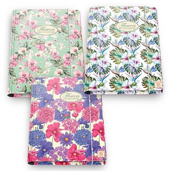 Pigna Nature Flowers A4 karton gumis mappa Méret: 26x34,5 cm 3 pólyás Hosszabbik oldalán erős zárógumival lapos gerincű 3 féle mintával (a minta nem választható)