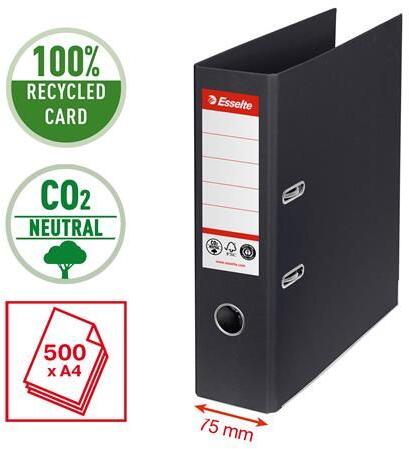 Kiváló minõségű, környezetbarát iratrendezõ 100%-ban újrahasznosított és 100%-ban újrahasznosítható kartonból, karbonsemleges, FSC és Blue Angel tanúsítványokkal. -erõs, szabadalommal védett, No. 1 emelõkaros szerkezet GS és LGA tanúsítványokkal -papír borítás -üde színek -radó-gyűrűk védik a véletlenszerű kinyílástól -kihúzólyuk -kapacitás: 500db A4-es l