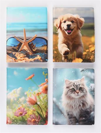 Személyes okmányok tárolására alkalmas 16+2 férőhelyes igazolványtok -kemény, mintás PVC fedlappal -álló formátum -lapszám: 16 lap -méret: 80×103 mm -súly: 56 g -vegyesen, a minta nem választható -használható okmánytípusok: kártyás személyi igazolvány, lakcímkártya, kártyás vezetői engedély, diákigazolvány, adóigazolvány kártya, bank- és hitelkártyák, plasz