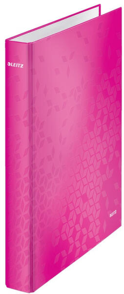 GYŰRŰS KÖNYV, 2 GYŰRŰ, D ALAKÚ, 40 MM, A4 MAXI, KARTON, LEITZ "WOW", RÓZSASZÍN Modern és szembetűnő geometriai mintázat a maximális WOW hatás érdekében. A laminált felület fényes, kiváló minőségű megjelenést kölcsönöz. Stílusos formatervezésű gyűrűskönyv ragyogó WOW színekben, melyek kihangsúlyozzák személyiségedet 2 D-gyűrűs szerkezet Stílusos gerinccím