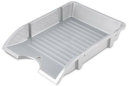 Irattálca, műanyag, törhetetlen, DONAU "Solid", ezüst - törésálló PP anyagból készült - a tálcák kialakítása lehetővé teszi, hogy több elemet is egymásra helyezzünk - szállításnál és tárolásnál biztonságosan és helytakarékosan egymásba helyezhetők - bordázott felület a tálca alján - A4 méretű iratok, katalógusok tárolására - mind irodai, mind otthoni hasz