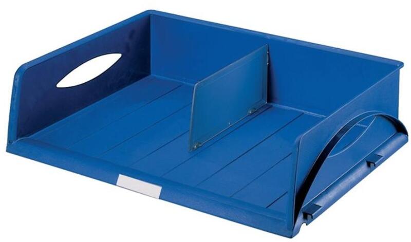 - erős, robusztus, a hosszabbik oldalon nyitott, A3 méretű irattálca - a belső kivehető műanyag fallal két darab A4 méretű rekeszre osztható - 15 x 75 mm címkével - feliratozható - A3 méret, alkalmas nagyobb tárgyak tárolására is - a címketartó bárhol elhelyezhető az alsó peremen - két kényelmes fogóval a könnyű szállításhoz - legfeljebb 12 tálca helyezhető egymá