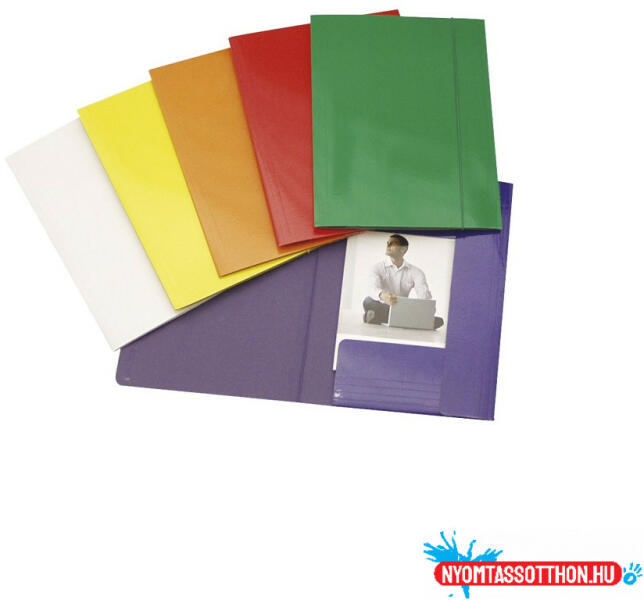 A kép illusztráció. Az ár egy darabra érvényes. A4 (250x350 mm) méretű dokumentumok tárolására alkalmas, 3 belső pólyás gumis mappa. Karton alapanyaga 600gr/m2. Kiszerelés: 10db/csomag.