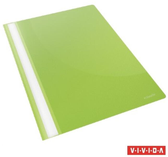 GYORSFŰZŐ, PP, A4, ESSELTE STANDARD, VIVIDA, ZÖLD Gyorslefűző a lyukasztott lapok rendszerezésére és védelmére. Lapos, kétágú, 8cm hosszú fém szerkezet műanyag leszorítóval Az áttetsző, nem tükröződő borító látni engedi a dokumentum első oldalát Hosszú címketartó, a címke kivételét ill. behelyezését segítő kivágással 160 A4 lap kapacitás (80 g) 25 db / tas