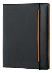 SaKOTA KONFERENCIAMAPPA STUDENT - NARANCS/ FEKETE - gyöngyvászon külső, színes puha fedés belül - gumi leszorítóval - jegyzettfüzettel és számos hasznos rekesszel