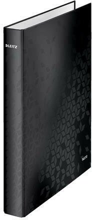 Gyűrűs könyv, 2 gyűrű, D alakú, 40 mm, A4 Maxi, karton, LEITZ "Wow", fekete