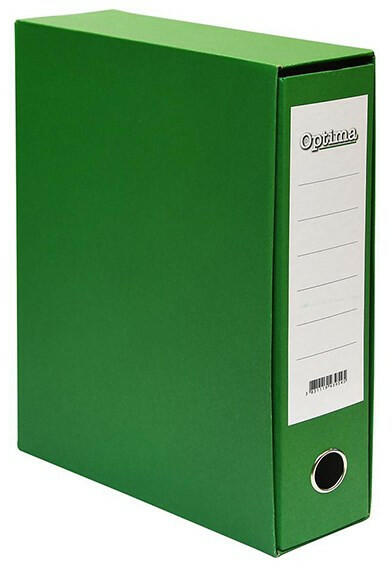 Iratrendező tokos OPTIMA A/4 zöld Egyszínű, matt papír borítású tokos iratrendező. Alapanyag: 1050 gr-os karton. 80 mm-es gerincvastagság. Ragasztott gerinccímke. Kihúzólyuk.