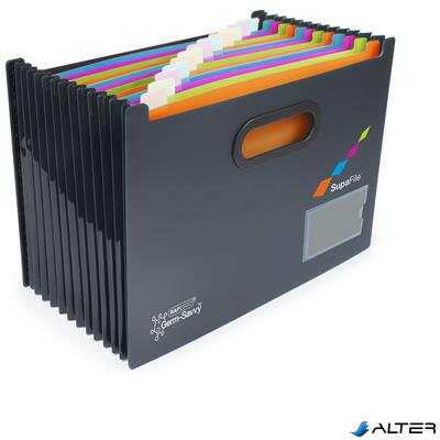 Rendezze rendszeresen papírjait Rapesco SupaFile segítségével. -rekeszenként körülbelül 115 lap tárolására alkalmas (80 gr-os papír esetén) -feliratozható rekeszek és névjegykártyatartó -Germ-Savvy : antibakteriális (ezüst- és cinkion-alapú) adalékanyaggal kezelik, amely gátolja és elpusztítja a baktériumokat -merev, tartós fogantyúk a könnyű szállításhoz -méret: