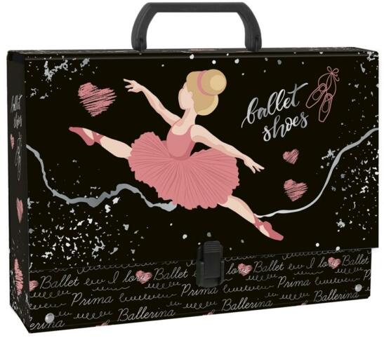 Balerina nagy fogantyús irattartó A4/90 mm az iskolai rajzok tárolására, szállítására. A bőrönd fogantyúja erős műanyag, fedele műanyag csattal zárható.