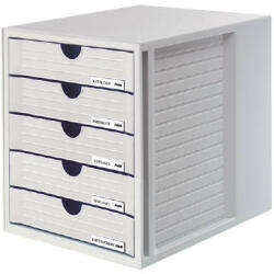 Elegáns HAN irattartó 5 zárt fiók kal, prémium minőségű műanyagból. A cserélhető címkék a dokumentumok könnyű kezelését és visszakereshetőségét eredményezik. A fiókok könnyedén, zajtalanul nyílnak, kihúzásgátló val rendelkeznek. Az irattartó csúszásmentes talp pal rendelkezik, melynek köszönhetően egymásra is helyezhető k. Anyag: polisztirol . Méret: 330 x 2