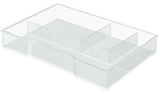 Leírás_x000D_ _x000D_ - a Leitz "Plus" és "Cube" irattárolók nagy és kis fiókjaiban is elfér_x000D_ - 4 rekesz kisebb asztali kiegészítők tollak, jegyzettömbök, névjegykártyák, adattárolók, gemkapcsok stb. tárolásához_x000D_ - áttetsző, fényes felületű, szövetmintás talp; a tálca alján szimbólumok jelzik a tárolási lehetőségeket_x000D_ - a csúszásmentes talp me