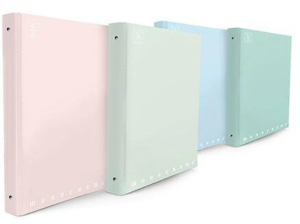Gyűrűs könyv Pigna Monocromo Pastel A/4 4 gyűrűs 40 mm gerinccel Méret: A/4 Gerincvastagság: 40 mm O gyűrűsszerkezettel 4 féle mintával (a minta nem választható)