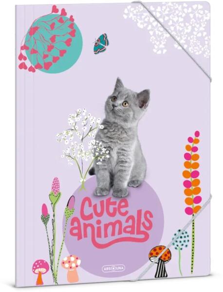 Ars Una A4 Gumis mappa Cute Animals-kitten (5368) A/4 méretű gumis dosszié. Iratok, füzetek tárolására. 350 gr-os vastag kartonból készült dosszié, lekerekített első sarkokkal, színes gumi zárópánttal. Külseje négy színnel, fényes fóliával nyomott. Belső oldala nyomatlan.