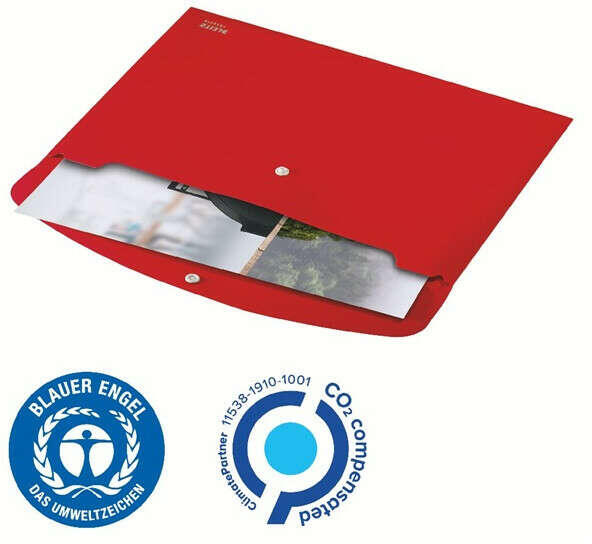 Prémium minőségű, zárható irattartó A4 méretű dokumentumok számára. 100%-ban újrahasznosított műanyagból, klímasemleges, 100%-ban újrahasznosítható Blue Angel tanúsított termék. Szemet gyönyörködtető, prémium minőségű PP irattartó mindennapi használatra az iskolában, irodában és otthon; praktikus záródással, amely megakadályozza a dokumentumok kicsúszását.