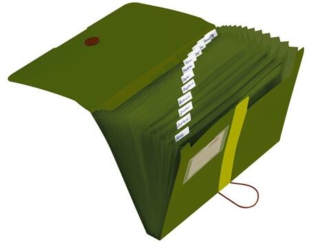 Rekeszes mappa, 12 feliratozható rekesszel, névjegykártya-tartó zsebbel. Gumipánttal zárható, újrafelhasznált PP alapanyagból, zöld színben, az easy orga to go GREEN termékcsalád tagja.