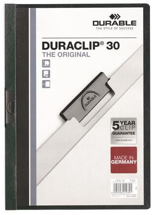 Az eredeti DURACLIP® tartós műanyagból készült klipmappa, ideális prezentációk, iratok, ajánlatok, konferenciák, szemináriumok jegyzeteinek vagy riportoknak lyukasztás nélküli lefűzérésre. -hátlap: színes kemény fólia -fedlap: átlátszó kemény fólia -speciális acél klippel, mely biztosan tartja a dokumentumokat -lyukasztás nélküli dokumentumkezelés -A4 formátumú d