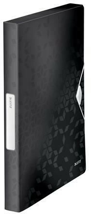 Gumis mappa, 30 mm, PP, A4, LEITZ "Wow Jumbo", fekete - kiváló minőségű, gerincvastagított mappa ragyogó WOW színekben - ideális dokumentumok, mappák vagy egyéb "Wow" termékek tárolásához és szállításához - tetszetős gumiszalagos záródás a dokumentumok biztonságos szállításához - gerinccímke a tartalom könnyű azonosításához - "Wow" gumis mappa, iratvédő mappa,