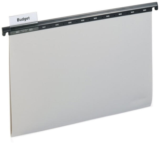 műanyag függőmappa 60 mm-es jelölővel, üres betétlappal, A-Z regiszterrel vízálló PP-ből készült a belső tartó zsebek megakadályozzák a dokumentumok kiesését a rögzítésé a papír mennyiségéhez állítható a papírok könnyen kivehetők 25 db/csomag Katalóguskód: 33814 Függőmappa, DURABLE, PP, A4, DURABLE, szürke Gyártó : Durable