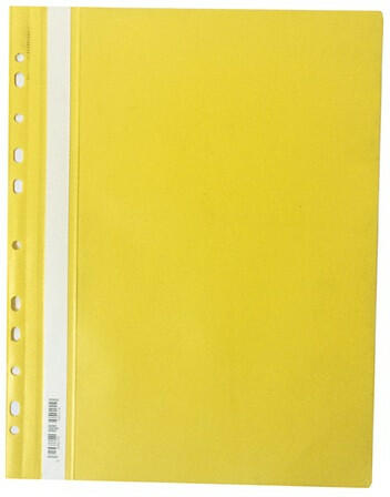 Gyorsfűző PP pd A/4 lefűzhető sárga * 200 lap lefűzésére alkalmas gyorsfűző * fém lefűző, műanyag leszorító fül * feliratozható oldalcsík * standard euro lyukasztásának köszönhetően lefűzhető iratrendezőbe, gyűrűskönyvbe * 120 mikron vastag áttetsző előlap, 180 mikron vastag színes hátlap